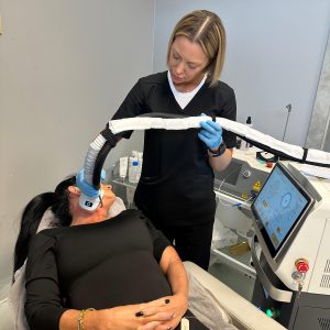 Zestaw laserowy oprócz dwóch fal laserowych wyposażony jest w chłodziarkę, która jest niezbędna w trakcie zabiegu, zapewniając komfort pacjentowi i minimalizując ryzyko podrażnień.