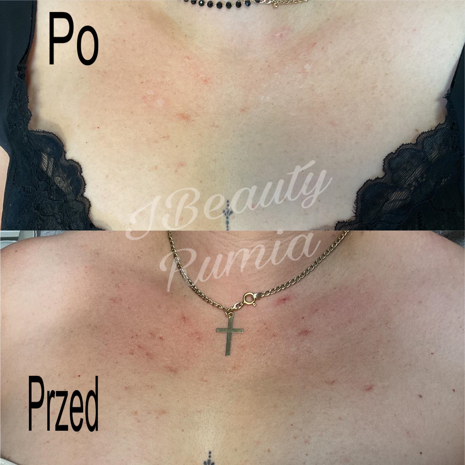 - nie stosować mocnych peelingów chemicznych oraz peelingów drobno i grubo-ziarnistych na 1 tydzień przed zabiegiem