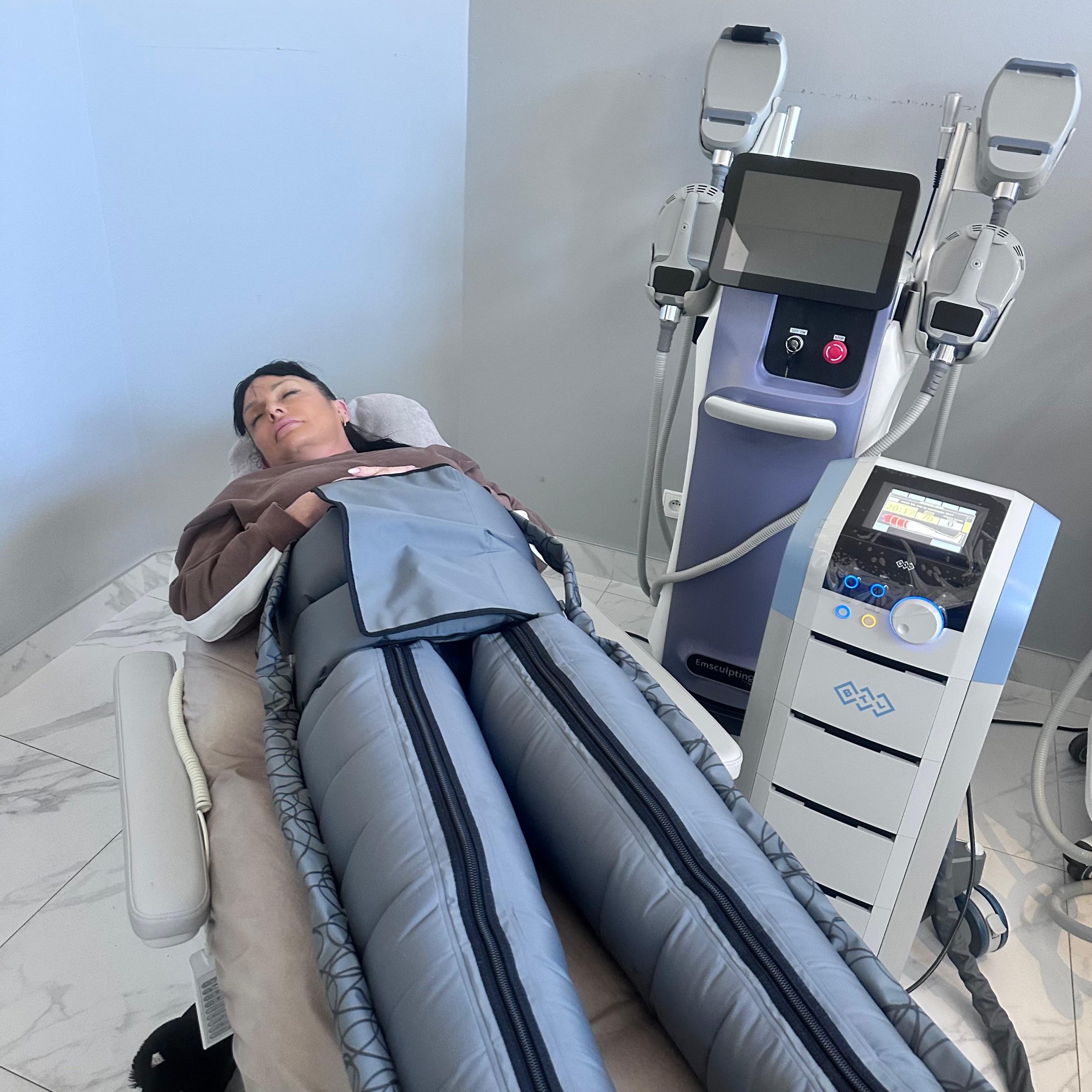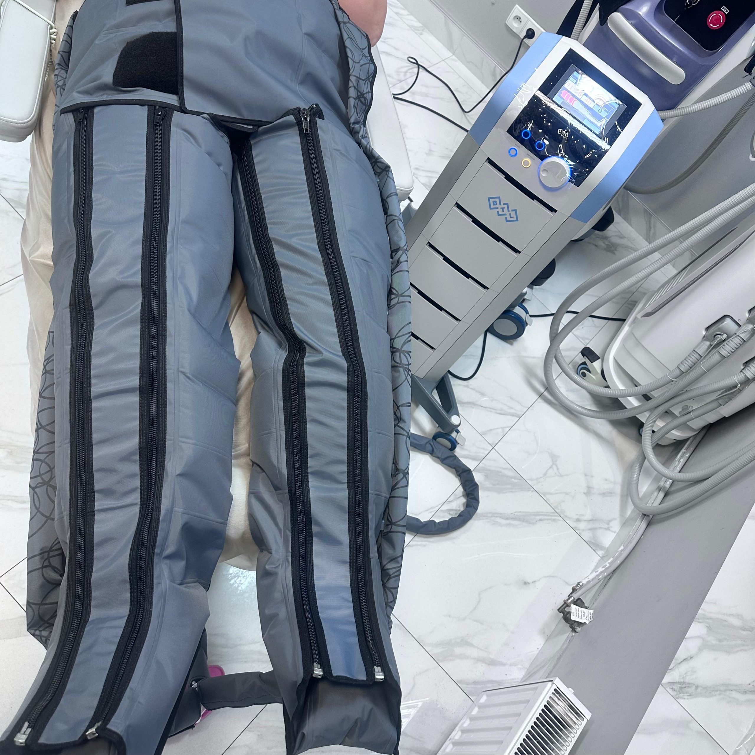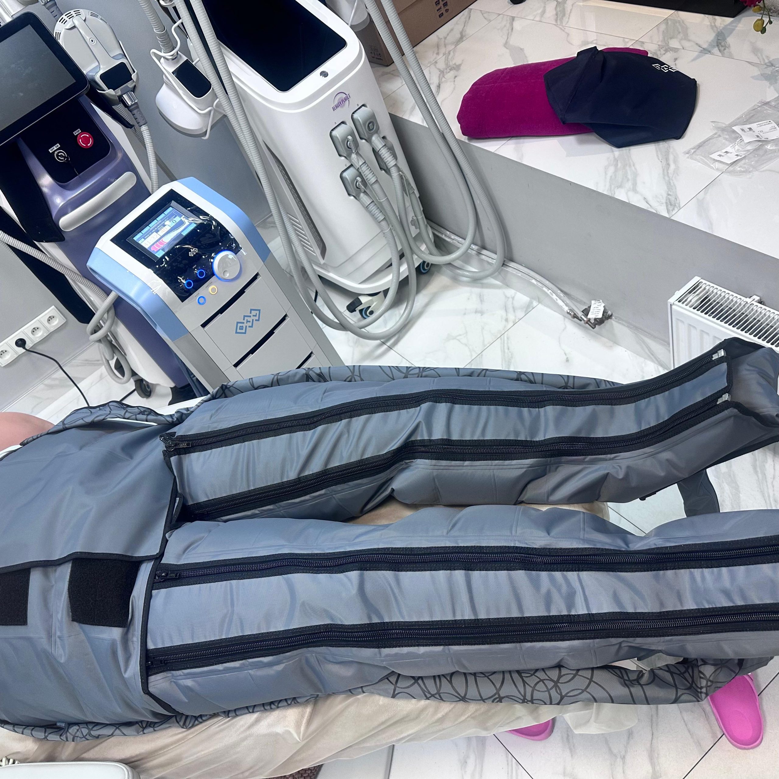 • Efektywność: Presoterapia pozwala na precyzyjne ustawienie siły ucisku i czasu trwania zabiegu, co daje intensywny efekt detoksykacji i „lekkich nóg”.